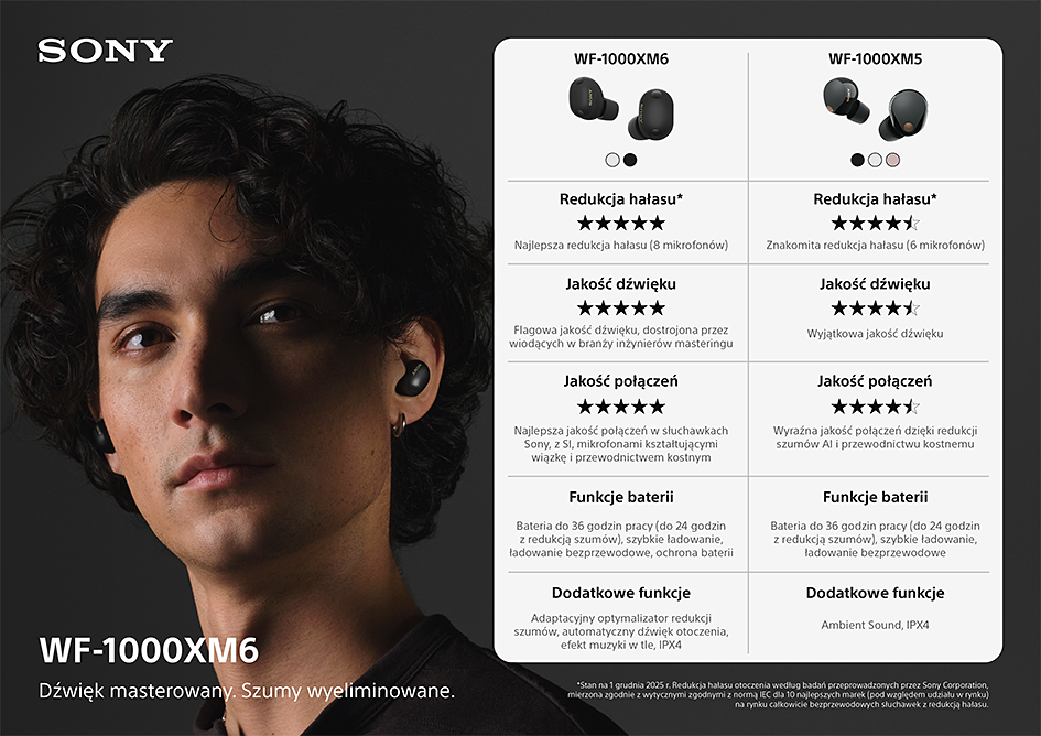 Seria flagowych słuchawek dousznych od Sony od lat wyznacza standardy w branży audio. Premiera modelu WF-1000XM6 wzbudziła ogromne emocje – i słusznie. Jeśli zastanawiasz się, czy zostać przy sprawdzonych „piątkach”, czy postawić na najnowszą technologię, przygotowaliśmy zestawienie, które pomoże Ci podjąć decyzję.