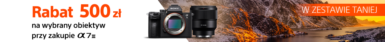 Przy zakupie aparatu Sony A7 III (body) ILCE-7M3 Kupujący może zakupić jeden egzemplarz wybranego obiektywu Sony z poniższej listy z rabatem 500 zł. Dodaj do koszyka aparat oraz wybrany obiektyw a cena obiektywu automatycznie obniży się w koszyku o 500 zł.