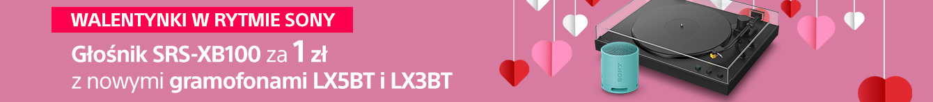 Przy zakupie wybranego modelu gramofonu Sony PSLX3BT lub PSLX5BT Kupujący może zakupić jeden egzemplarz głośnika SONY SRS-XB100 ( dowolny kolor ) za 1 zł. Dodaj do koszyka 1 z poniższych gramofonów oraz wybrany głośnik Sony SRS-XB100 w dowolnym kolorze a cena głośnika automatycznie obniży się w koszyku do 1 zł.