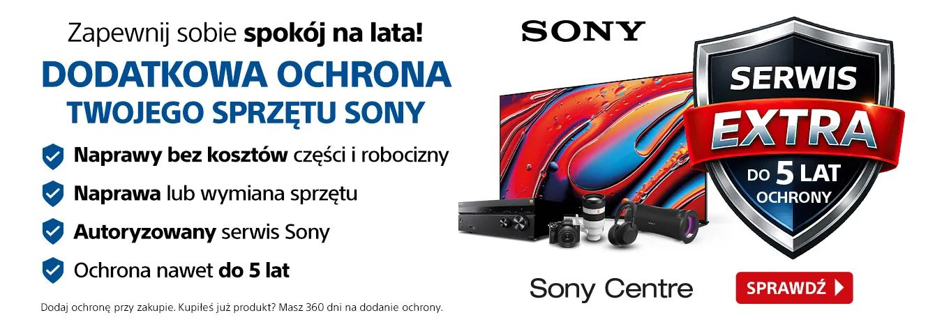 Zakup wysokiej klasy telewizora, aparatu czy sprzętu audio to inwestycja w doskonałą jakość obrazu i dźwięku na lata. Wybierając markę Sony, stawiasz na niezawodność, jednak nawet najbardziej zaawansowane technologie zasługują na dodatkową ochronę. Dzięki usłudze Serwis Extra, dostępnej w salonach Sony Centre oraz na scentre.pl, możesz cieszyć się swoim urządzeniem bez żadnych zmartwień nawet przez 5 lat.